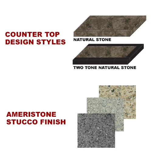 Finish your counter top with granite, porcelain or natural stone tile. Ameristone adheres more securely than traditional stucco for a finish that lasts even longer along with being weather resistant.