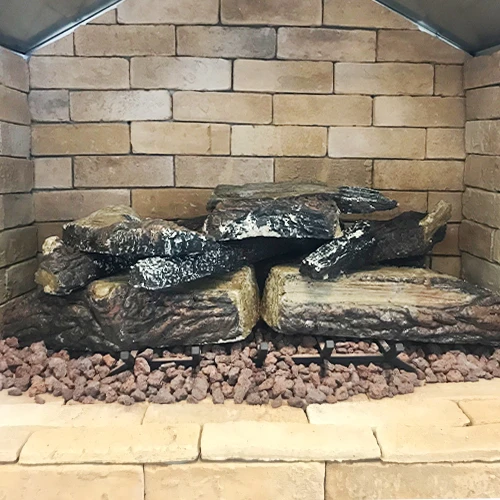 The Cal Flame Fire Log set includes 8 decorative fire logs, that are 14 inches long, with Lava Rocks at the base of the firebox. Fireplaces come standard with 18-inch grate that supports the fire logs.